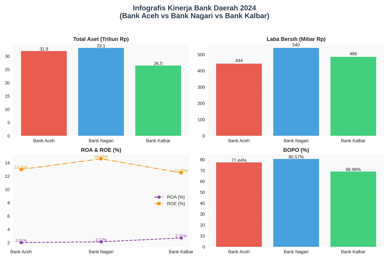 Bank Nagari dan Kalbar membuktikan bahwa ukuran aset tidak selalu menentukan kinerja. Dengan strategi efisiensi dan manajemen yang lebih gesit, bank yang lebih kecil sekalipun bisa melampaui Bank Aceh dalam hal profitabilitas.