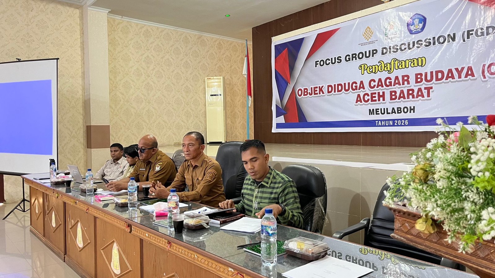 Meulaboh – Dinas Pendidikan dan Kebudayaan (Disdikbud) Kabupaten Aceh Barat bersama Tim Ahli Cagar Budaya (TACB) dan Tim Pendaftaran Cagar Budaya(TPCB) Aceh Barat menggelar Forum Group Discussion (FGD) Objek Diduga Cagar Budaya (ODCB) Tahun 2026, Senin (28/04), di Aula Disdikbud Aceh Barat.