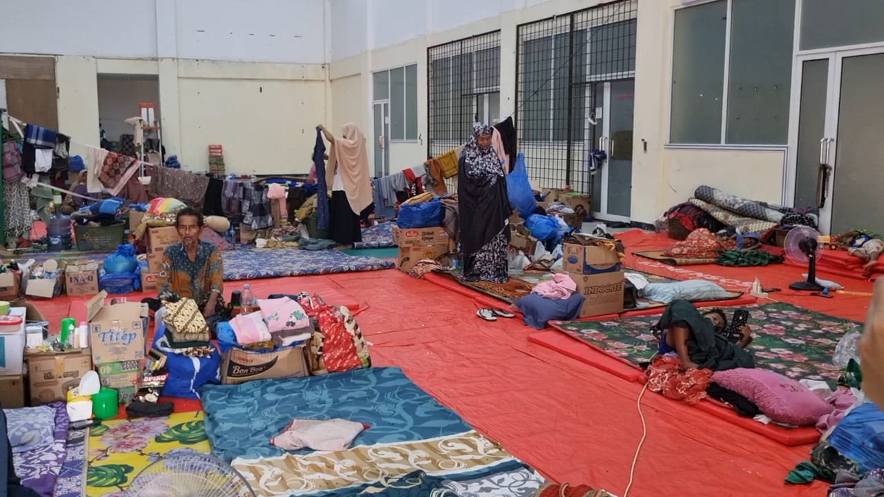 “Kami menunggu. Sampai kapan di pengungsian, belum tahu,” ucap Roslina pelan.
